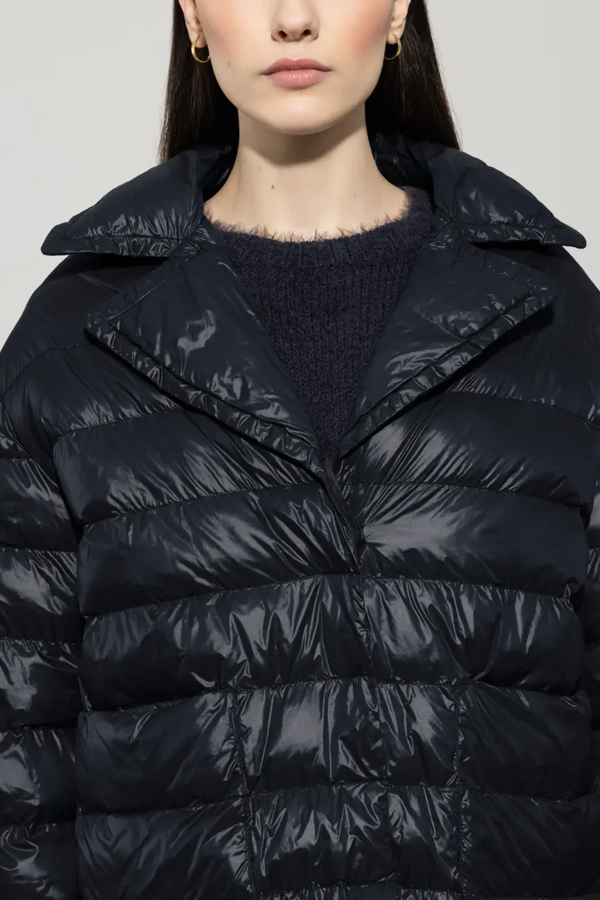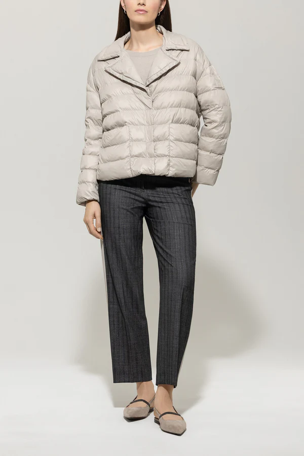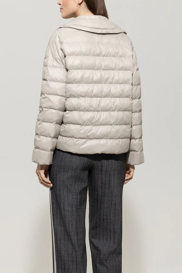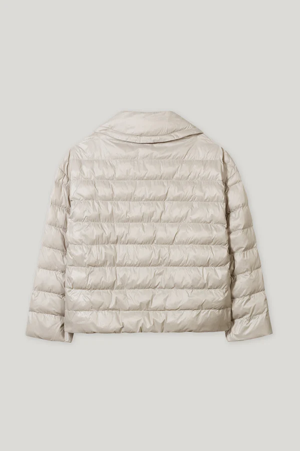 Lekka pikowana kurtka o pudełkowym kroju i lekko przyciętej sylwetce. Kurtka jest wykonana z lekkiego nylonu outdoorowego i wypełniona ociepliną z puchu syntetycznego.