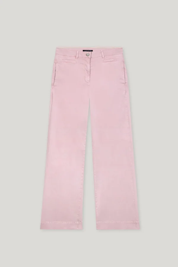Spodnie jeansowe Chino z wysokiej jakości satynowego splotu z zawartością lyocellu. Spodnie mają dwie rozcięte kieszenie na bocznym szwie, dwie wskazane kieszenie z przodu i dwie kieszenie z tyłu.